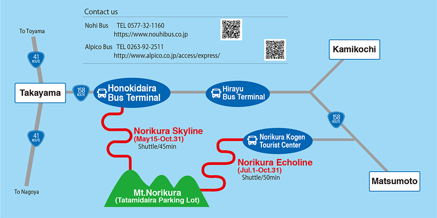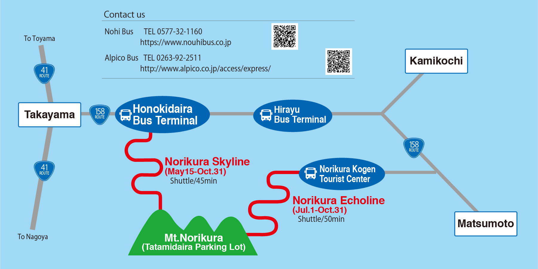 It is necessary to take a shuttle bus (Norikura Skyline) to go to Mt. Norikura